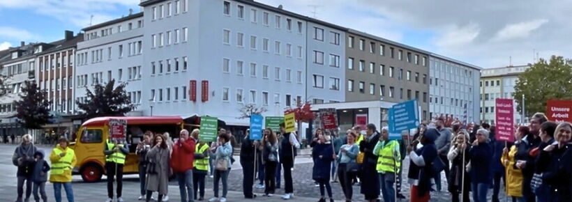 Etwa 100 Beschäftigte aus Mönchengladbacher Pflegeeinrichtungen haben für mehr Personal und bessere Arbeitsbedingungen demonstriert