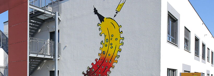 Das ist mal eine ganz besondere Auszeichnung: Der Aktionskünstler Thomas Baumgärtel hat eine "Impfbanane" an das Altenheim Hardterbroich gesprayt. Sein Ziel: er möchte damit Gesundheitseinrichtungen sichtbar machen, die sich in der Corona-Pandemie besonders verdient gemacht haben.