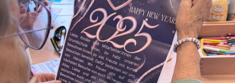 Mitarbeiter:innen und Bewohner:innen des Altenheim Kamillus besuchten die KGS Ohler und überreichten ein kleines Geschenk