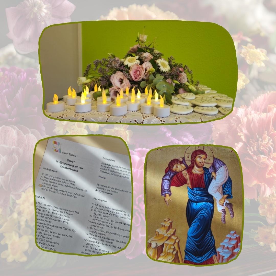 Im Rahmen des Gedenkgottesdienstes werden Gebete, Predigten und Fürbitten für die Verstorbenen gesprochen. Außerdem werden Lieder mit musikalischer Begleitung gesungen. Zum Schluss werden die Namen der Verstorbenen vorgelesen und für jede:n eine Kerze angezündet. Ein herzlicher Dank gilt der Glaubensgemeinschaft St. Egidio, die uns diese Art von Abschied ermöglicht. Wir hoffen auf viele weitere Jahre der Zusammenarbeit.