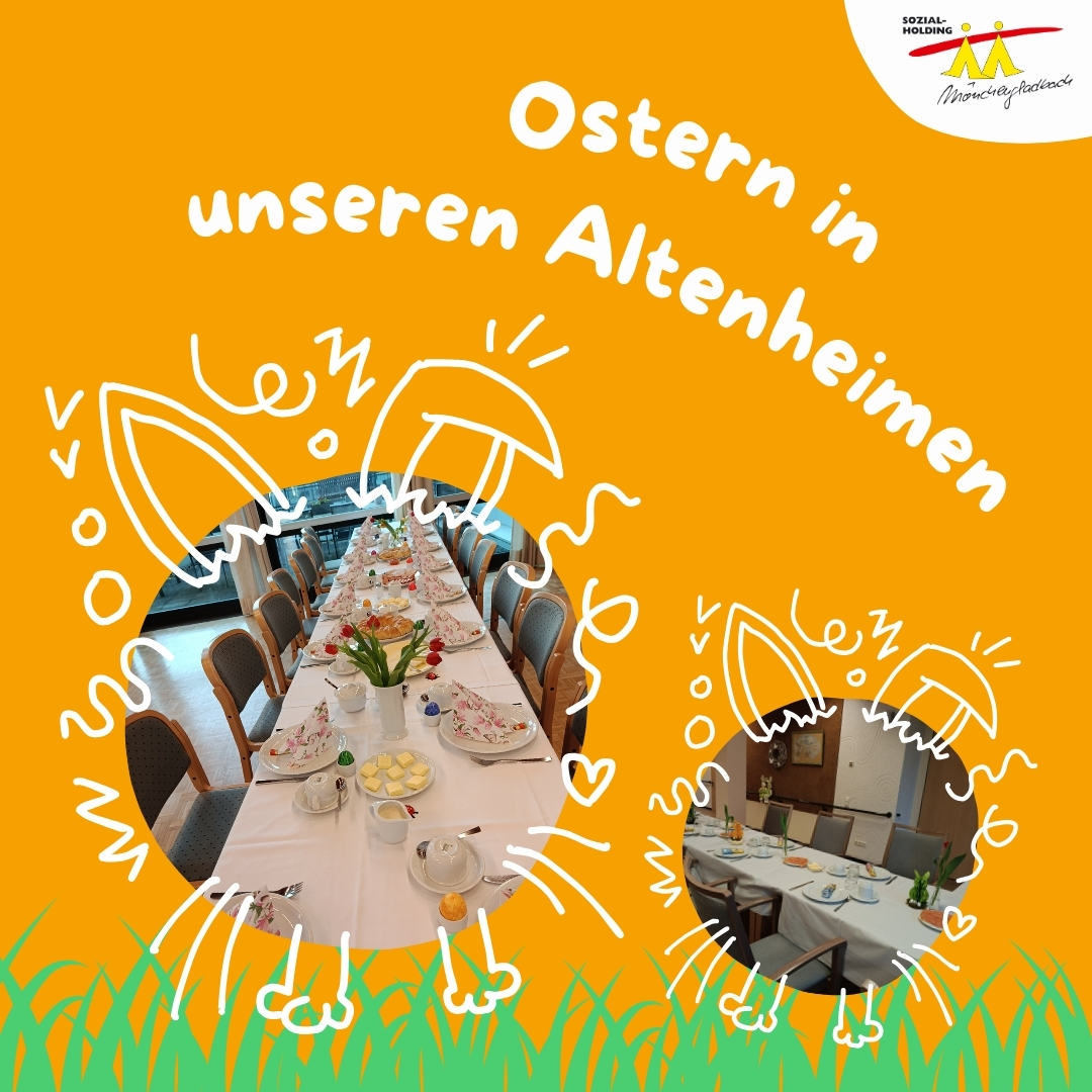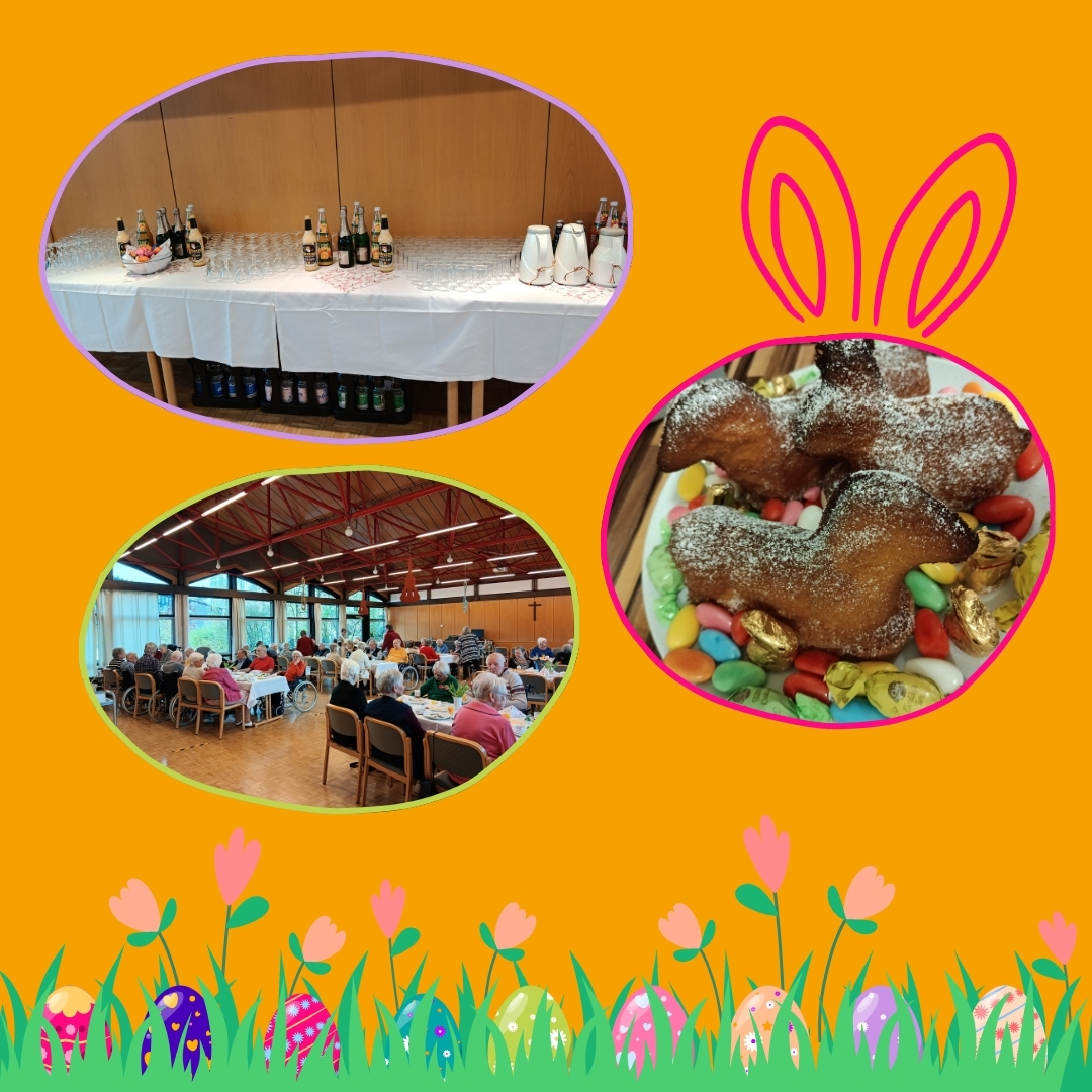 Im Altenheim Rheindahlen fand das Frühstück in unserem Festsaal statt und auch in den anderen Häusern sorgten frühlingshafte Dekorationen für eine feierliche Atmosphäre. Von Osterkränzen über frischen Obstsalat bis hin zu bunten Eiern, Sekt und Orangensaft – es war für jeden Geschmack etwas dabei!