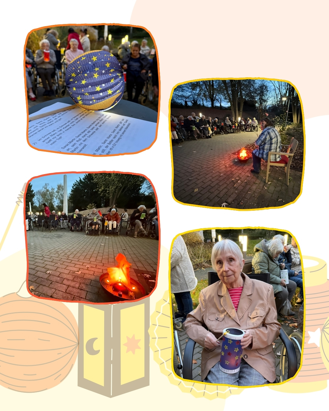 Eine St. Martinsfeier der besonderen Art gab es letzte Woche bei noch milden Temperaturen in unserem Altenheim Kamillus: Die Bewohner:innen stärkten sich zunächst mit heißem Kakao und danach wurden gemeinsam die schönsten Martinslieder gesungen. Besonders gut kam das durch LED & wehende Tücher simulierte „Martinsfeuer“ an.