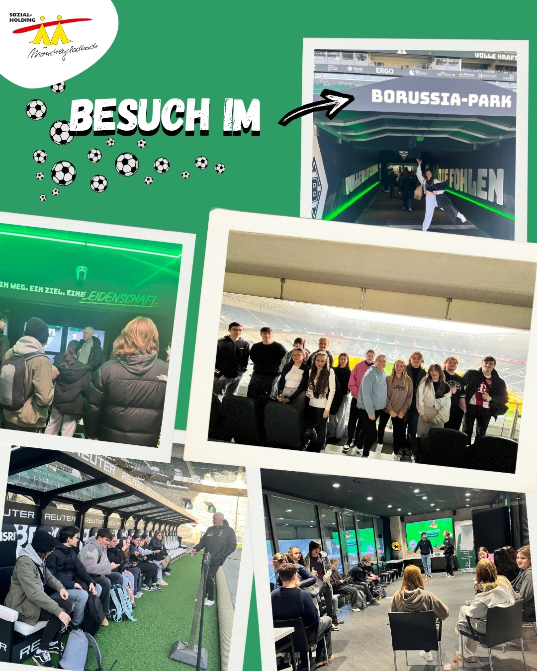 Unsere Freiwilligen durften im Borussia-Park echtes Stadion-Feeling erleben: Einlaufen ins Stadion, Platz nehmen auf der Bank – Gänsehautmoment inklusive!