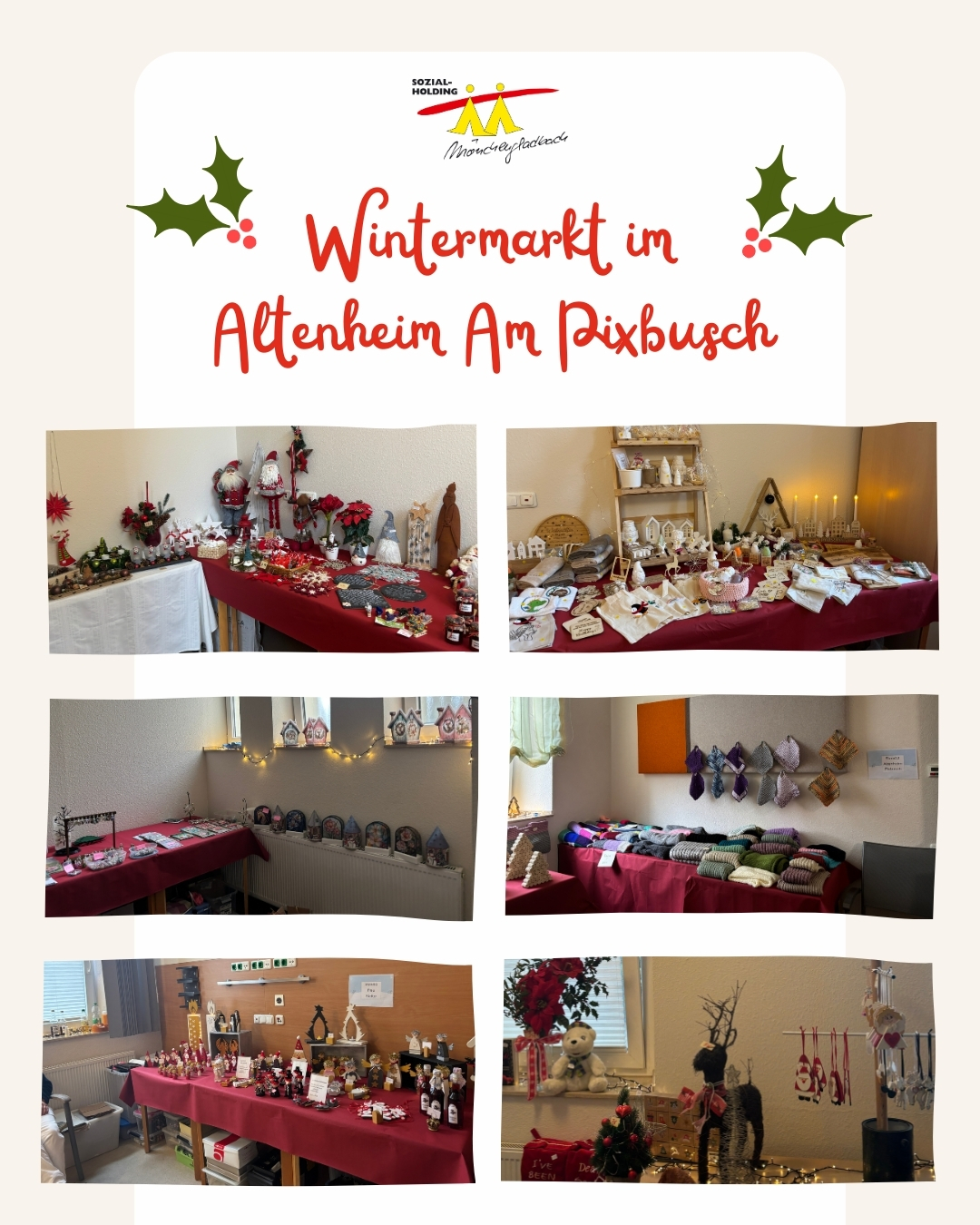Am vergangenen Wochenende hat sich unser Altenheim in Odenkirchen in ein Winterwunderland verwandelt. Der traditionelle Wintermarkt lockte Bewohnerinnen und Bewohner, Angehörige sowie zahlreiche Gäste aus der Nachbarschaft an und sorgte für eine warme, festliche Atmosphäre.